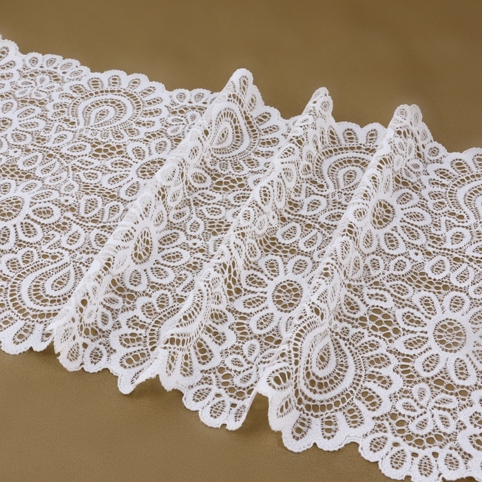 Кружевная эластичная ткань, 190 мм × 23 ± 1 м, цвет белый