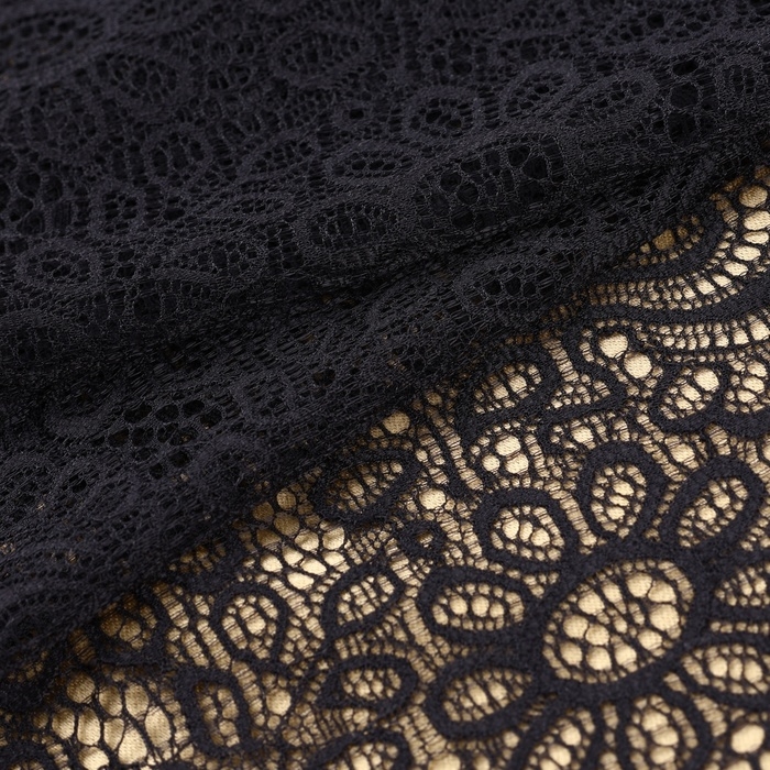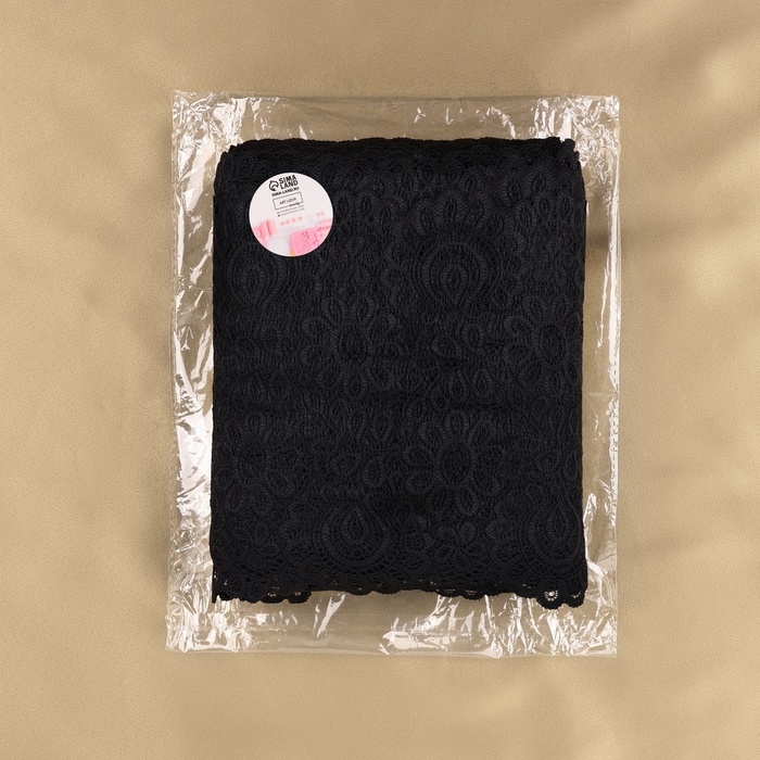 Кружевная эластичная ткань, 190 мм × 23 ± 1 м, цвет чёрный