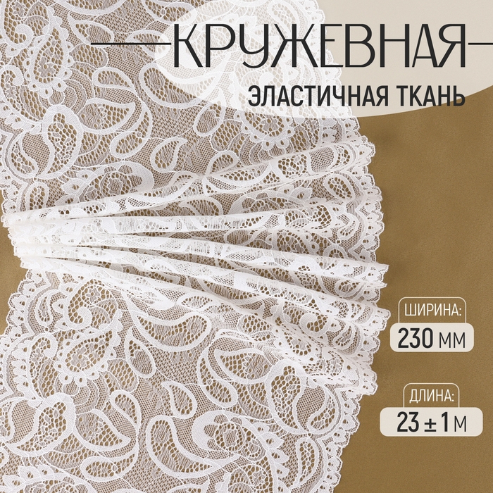 Кружевная эластичная ткань, 230 мм × 23 ± 1 м, цвет белый