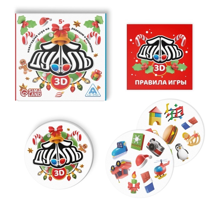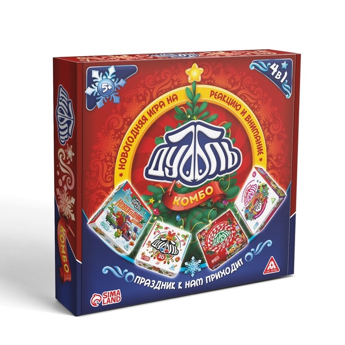 Новогодняя настольная игра «Новый год: Дуббль КОМБО. Праздник к нам приходит», 4 в 1, 5+