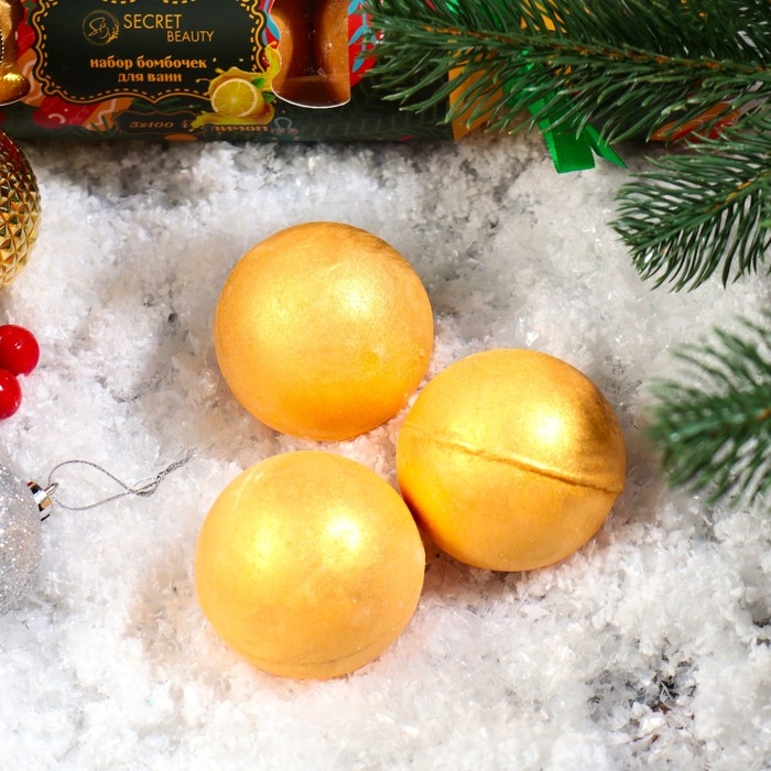 Новогодний набор бомбочек для ванны «Конфета», золотой, 3 шт по 100 гр. - это идеальное дополнение для создания волшебной атмосферы во время праздничного сезона.