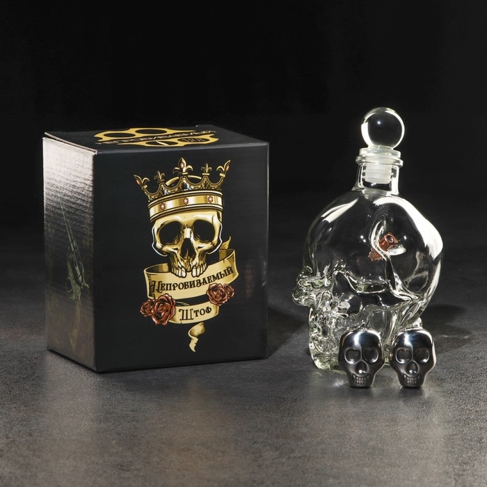 Набор "Непробиваемый. Череп", Штоф 400 мл, камни для виски 2 шт