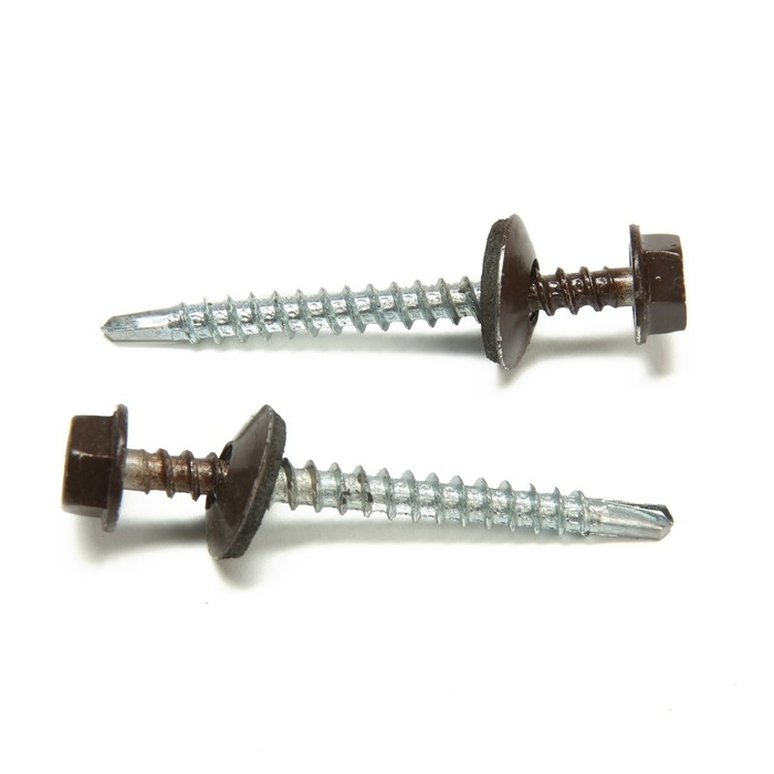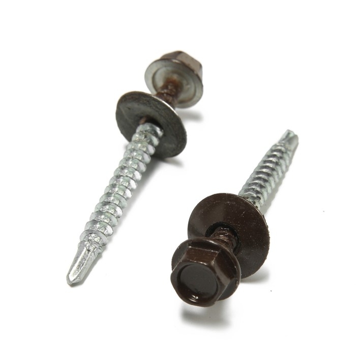 Саморезы кровельные 4,8х50 мм, RAL8017 цвет коричневый, 150 шт.