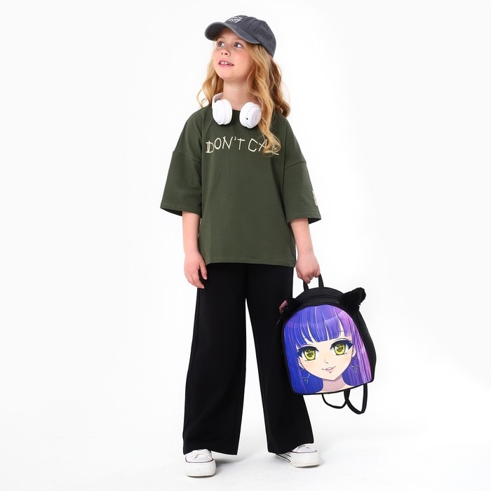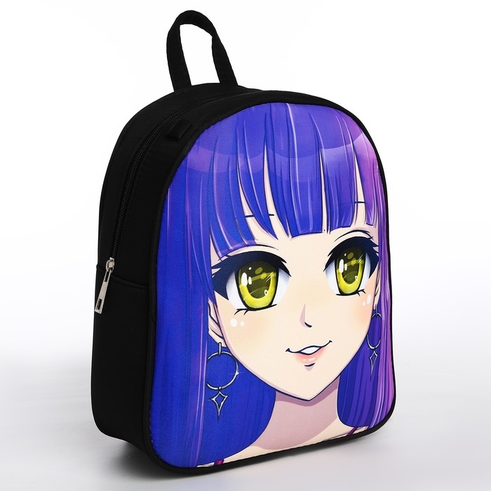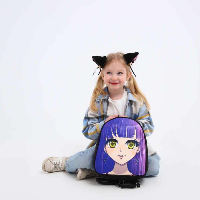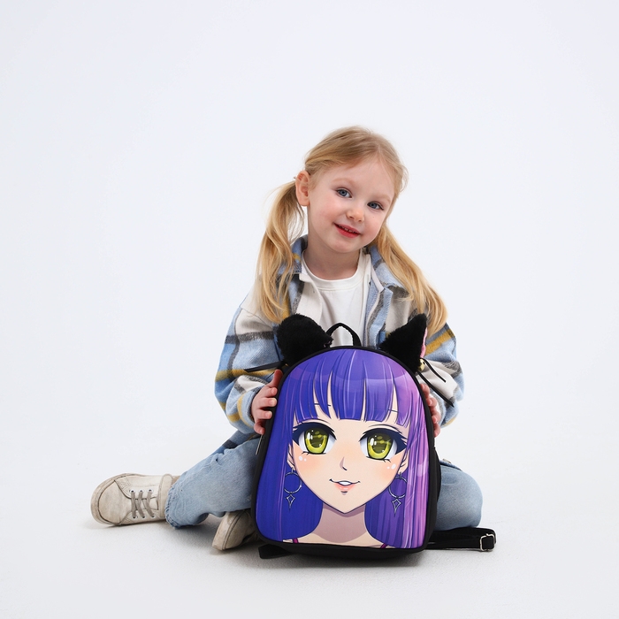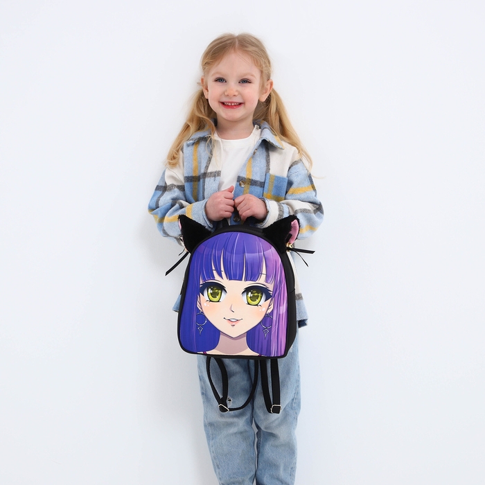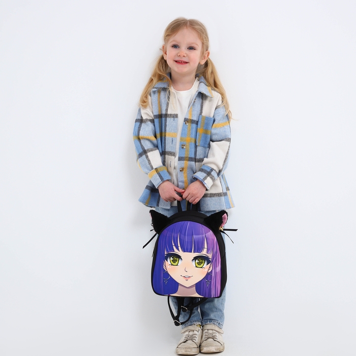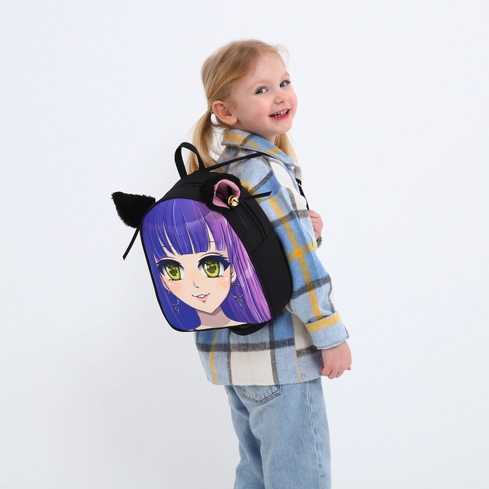 Рюкзак школьный текстильный с ушками на заколках «Аниме», 27х23 см, чёрный/фиолетовый