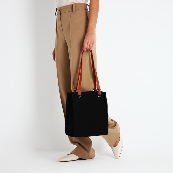 Сумка женская тоут на молнии, цвет чёрный