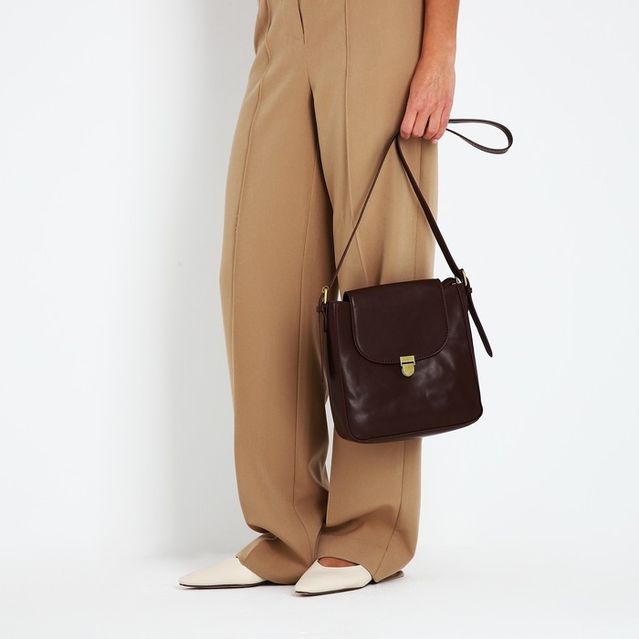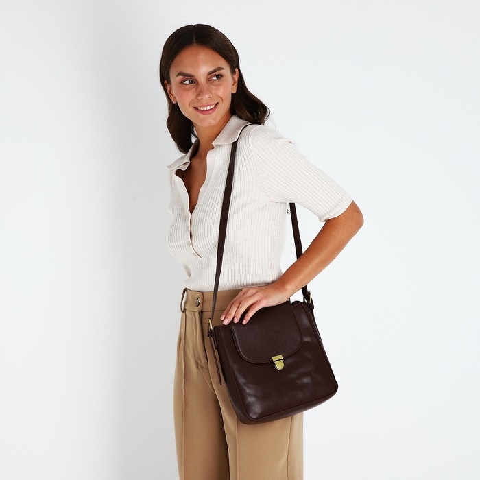 Сумка-мессенджер на клапане, цвет тёмно-коричневый