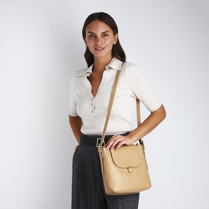 Сумка-мессенджер на клапане, цвет бежевый