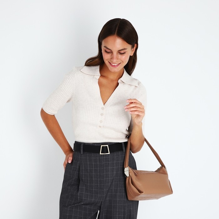 Сумка-багет на молнии, цвет бежевый