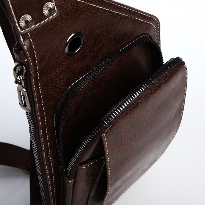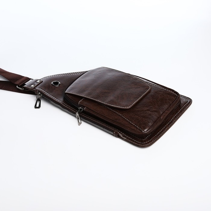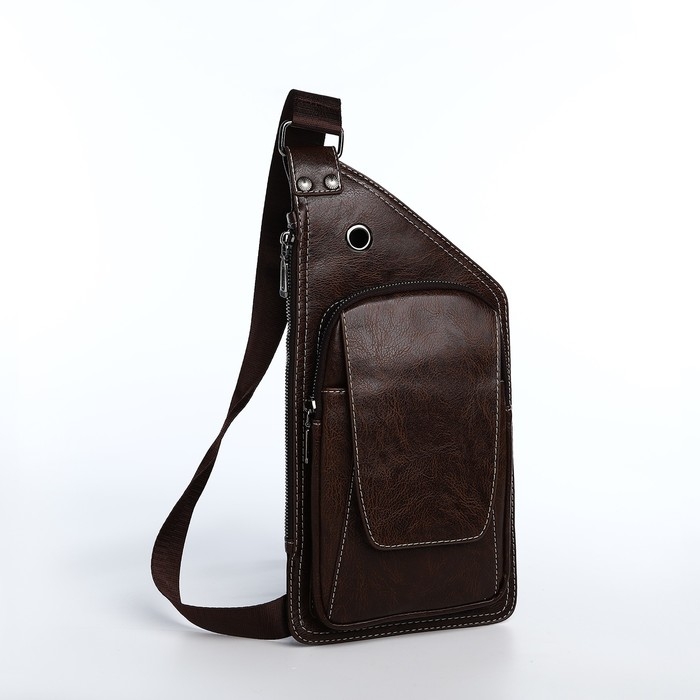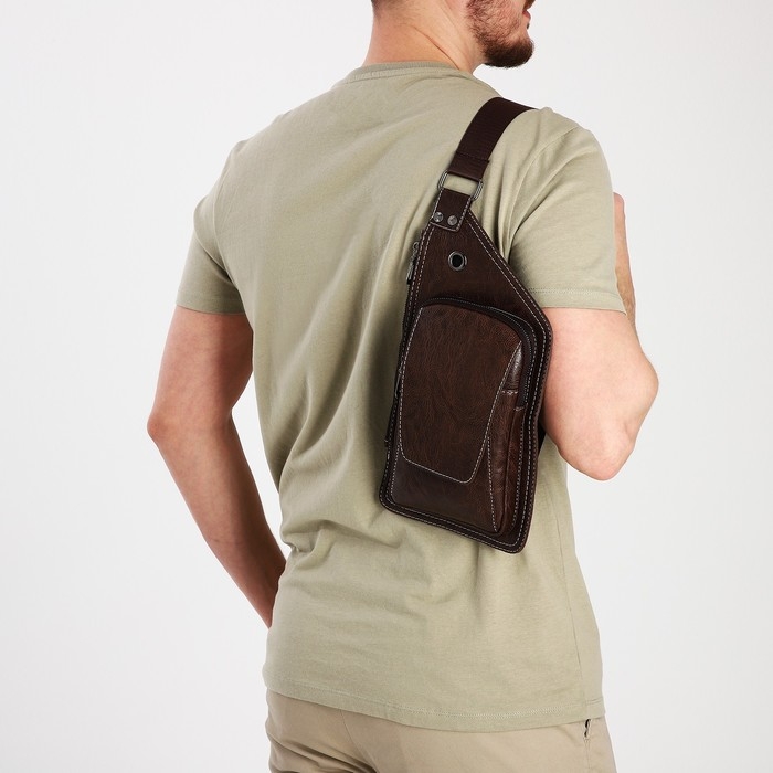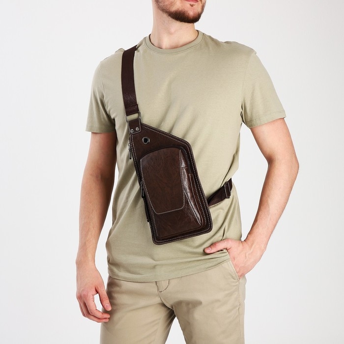 Сумка-слинг мужская из искусственной кожи, цвет тёмно-коричневый