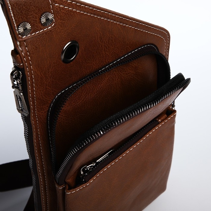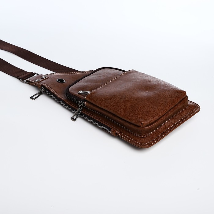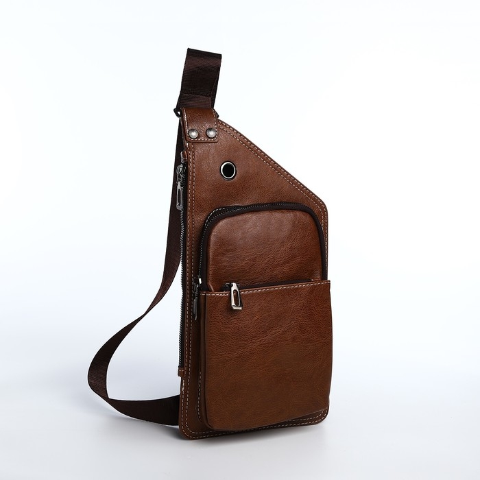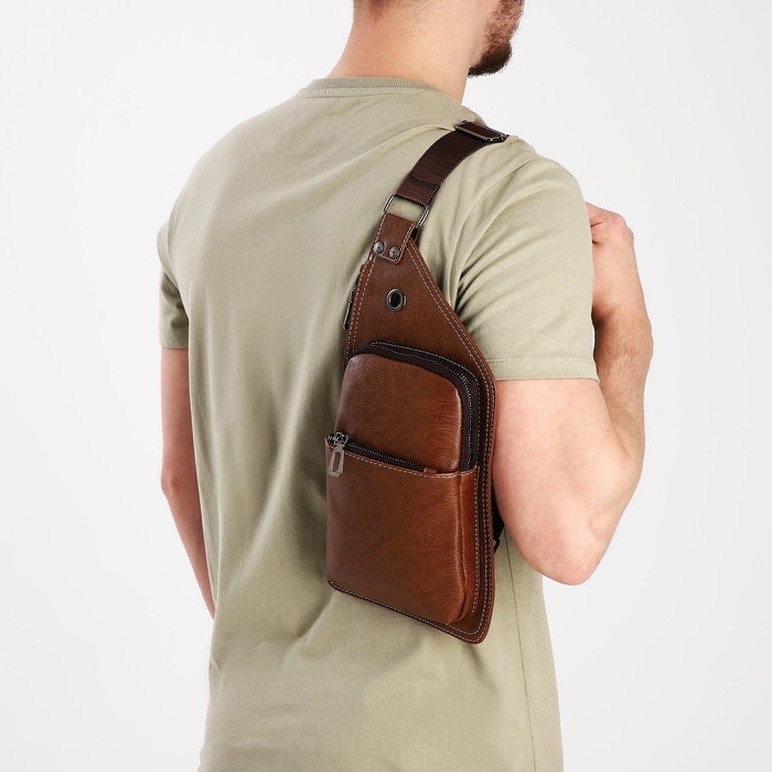 Сумка-слинг мужская из искусственной кожи, цвет коричневый