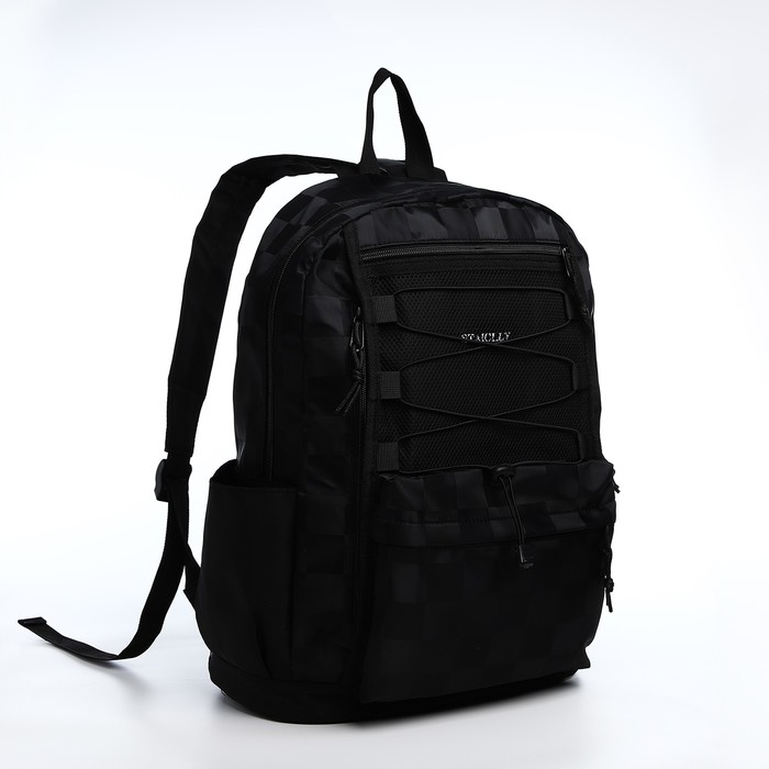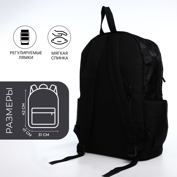 Рюкзак школьный из текстиля, 6 карманов, цвет чёрный
