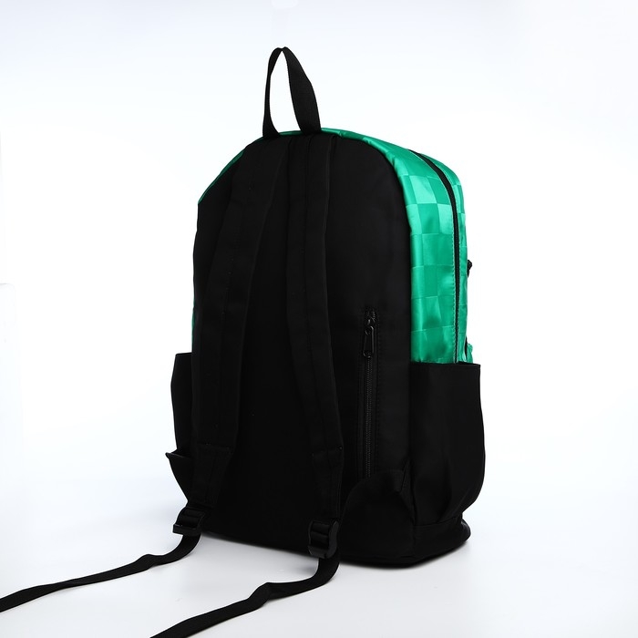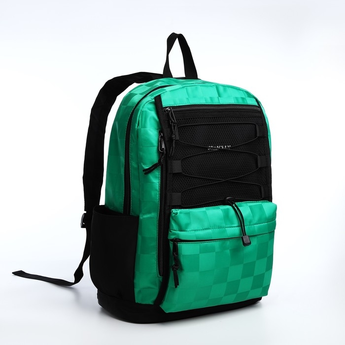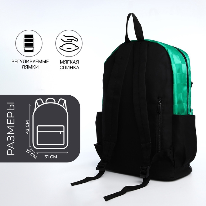 Рюкзак школьный из текстиля, 6 карманов, цвет белый/зелёный