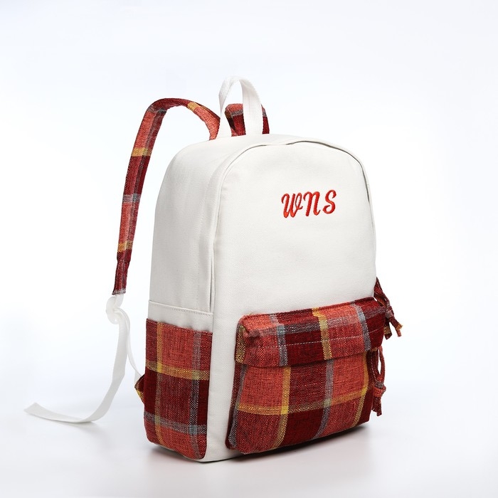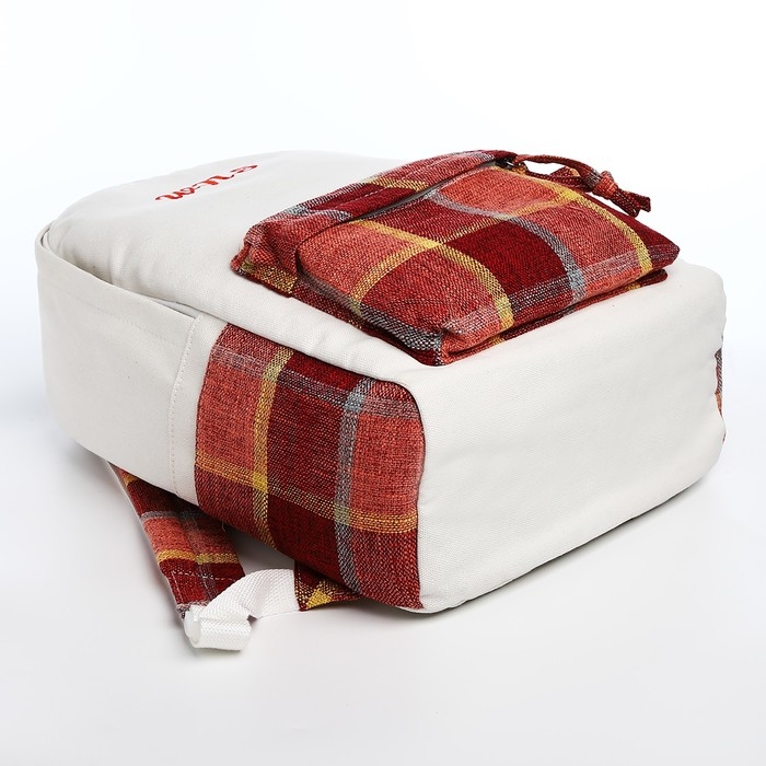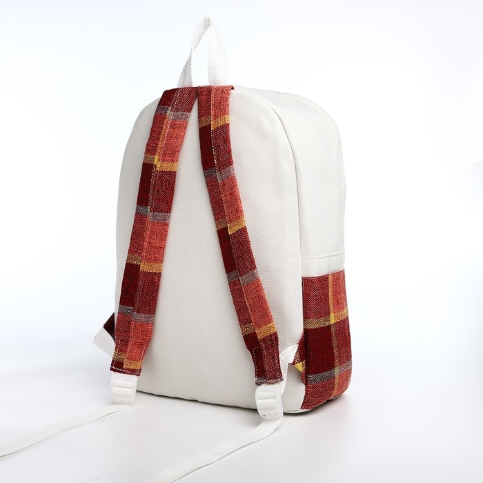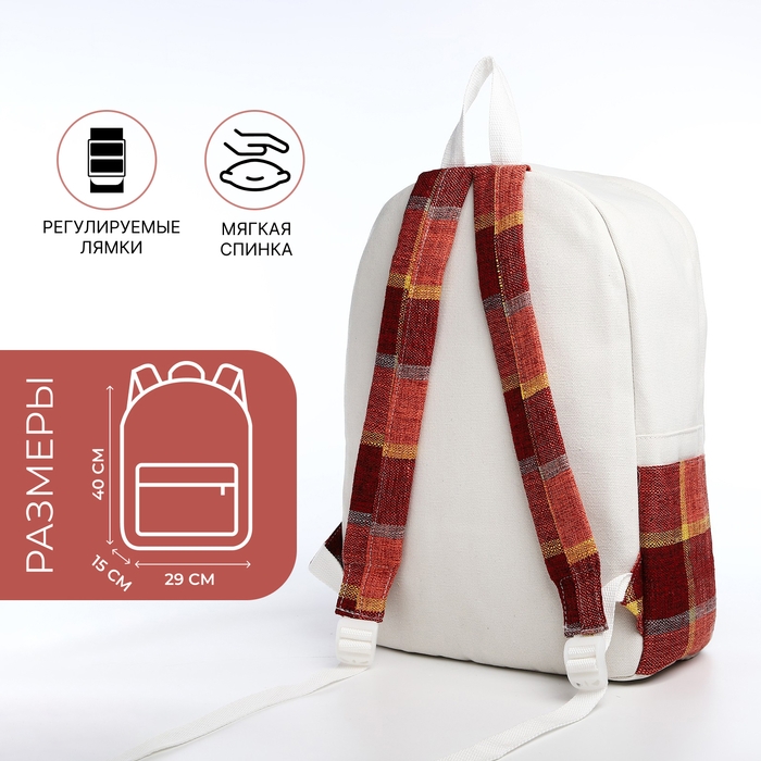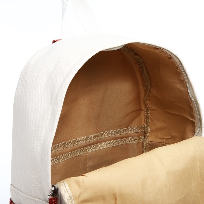 Рюкзак школьный из текстиля, 3 кармана, цвет белый/коричневый/красный