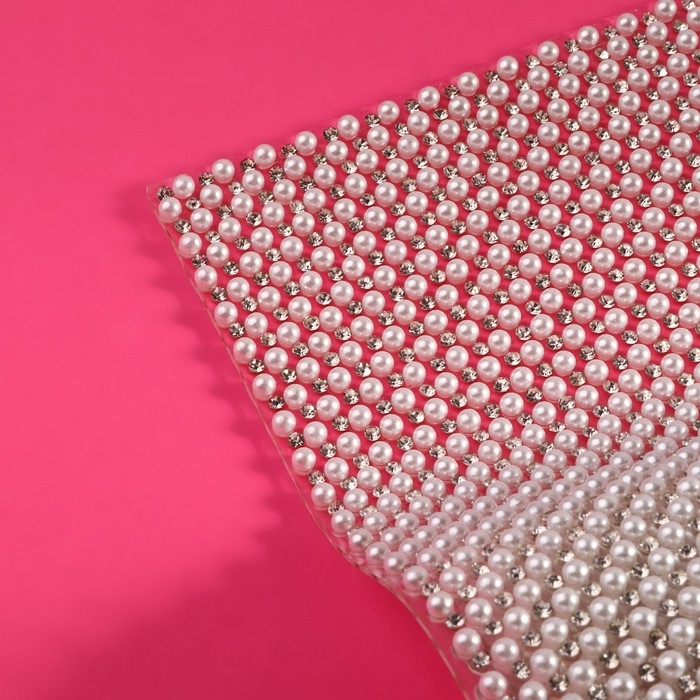 Жемчуг со стразами термоклеевой, 40 × 24 см, цвет белый