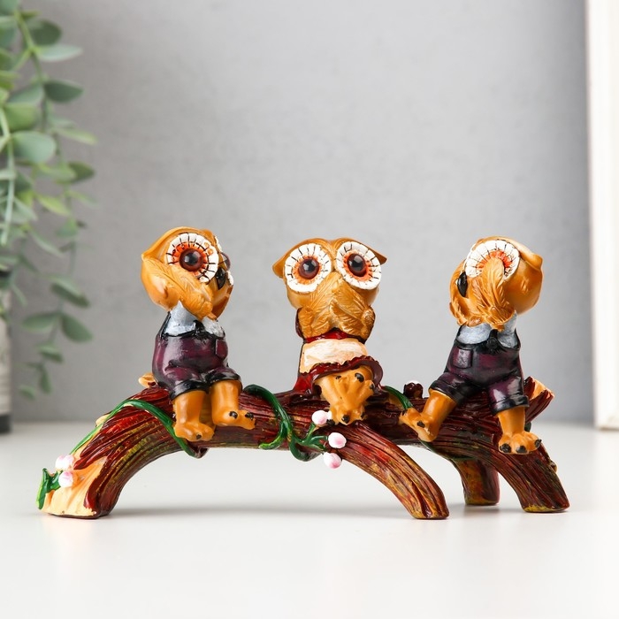 Сувенир полистоун "Три филина на ветви" 18,6х7х10 см