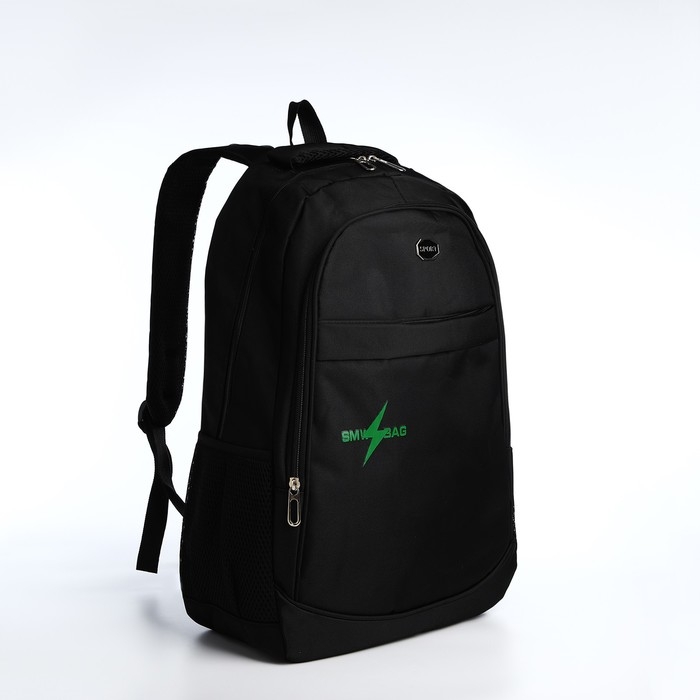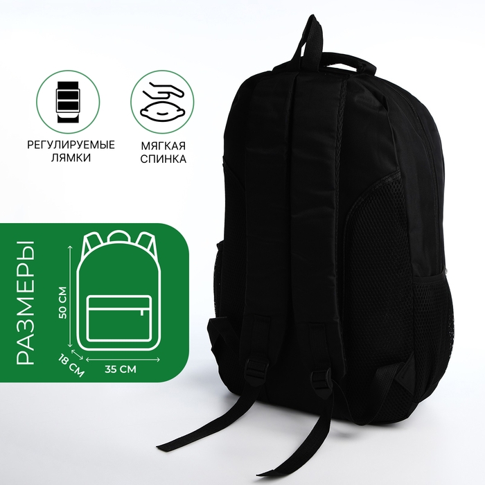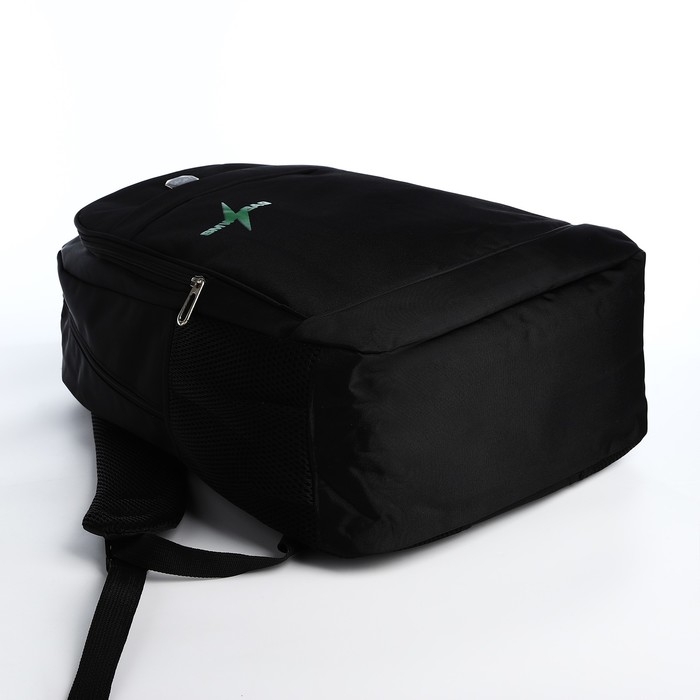 Рюкзак молодёжный из текстиля на молнии, 4 кармана, цвет чёрный/зелёный