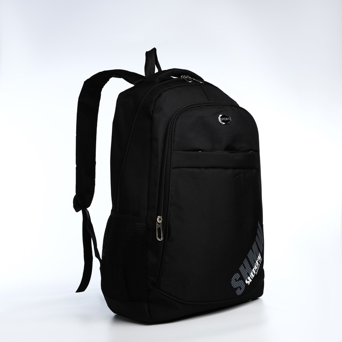 Рюкзак молодёжный из текстиля на молнии, 4 кармана, цвет чёрный/серый
