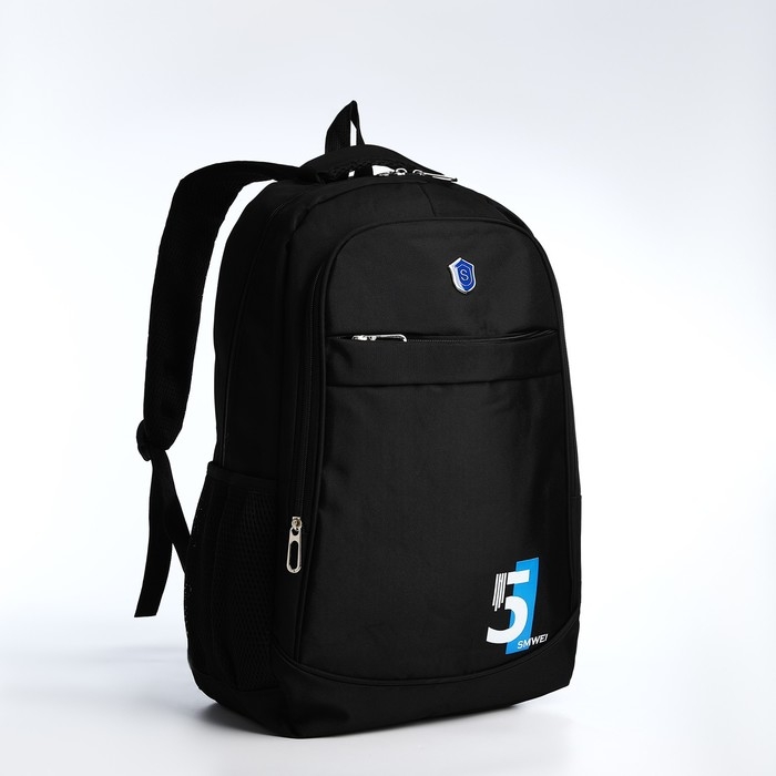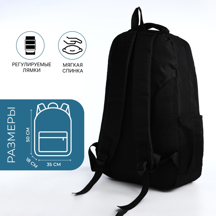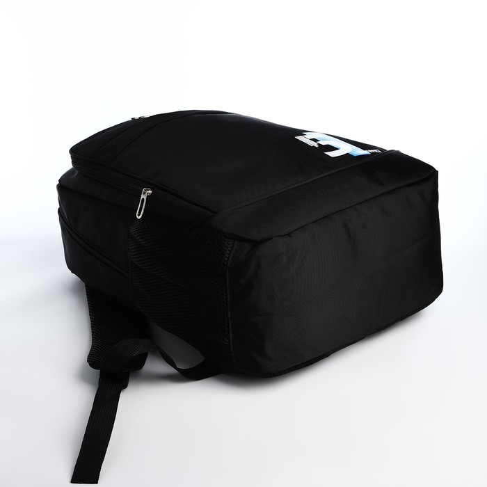 Рюкзак молодёжный из текстиля на молнии, 4 кармана, цвет чёрный/синий