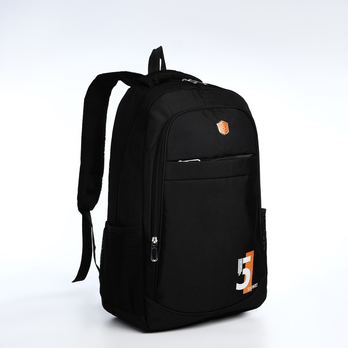 Рюкзак молодёжный из текстиля на молнии, 4 кармана, цвет чёрный/рыжий