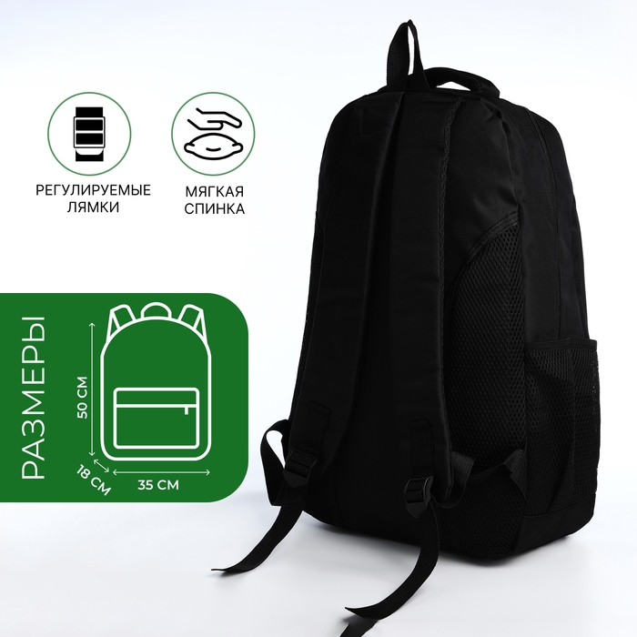 Рюкзак молодёжный из текстиля на молнии, 4 кармана, цвет чёрный/зелёный