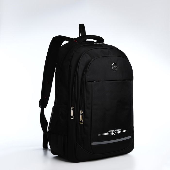 Рюкзак молодёжный из текстиля, 2 отдела на молнии, 4 кармана, цвет чёрный/белый