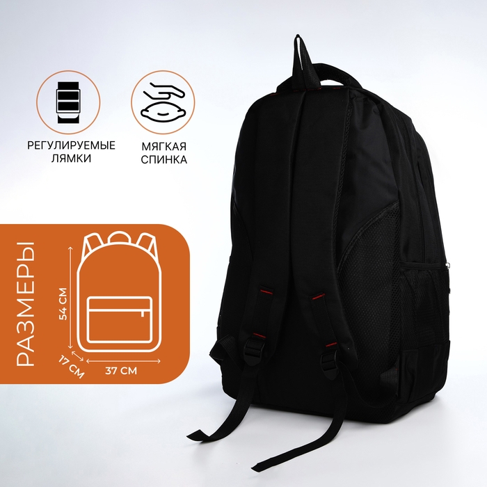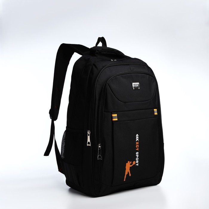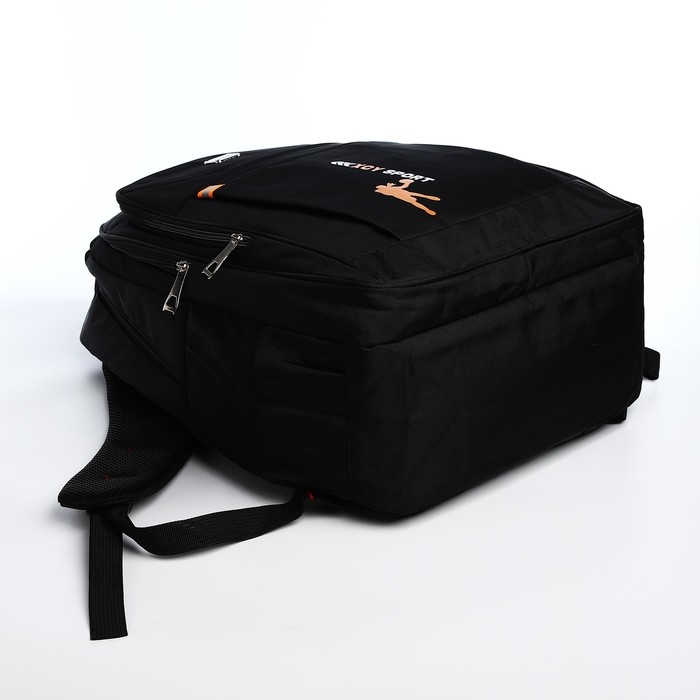 Рюкзак молодёжный из текстиля, 2 отдела на молнии, 3 кармана, цвет чёрный/оранжевый
