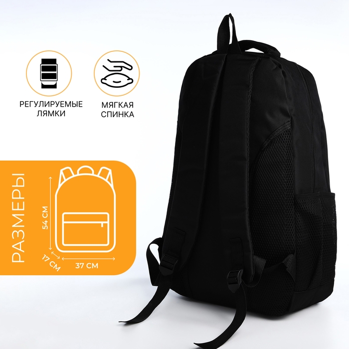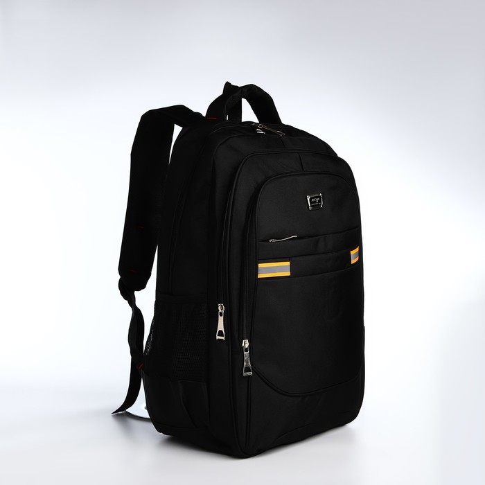 Рюкзак молодёжный из текстиля, 2 отдела на молнии, 4 кармана, цвет чёрный/оранжевый