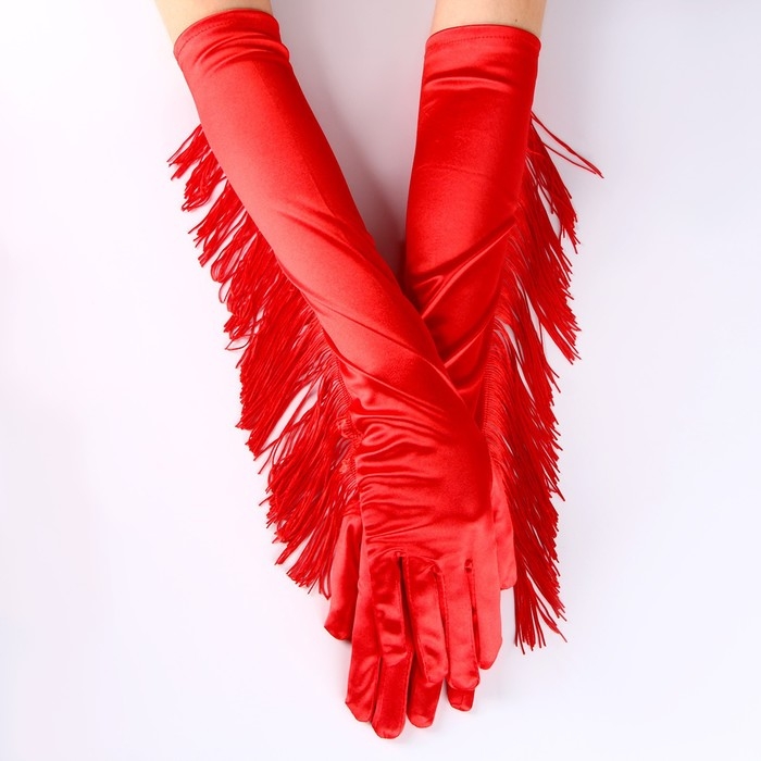 Перчатки женские с бахромой, цвет красный