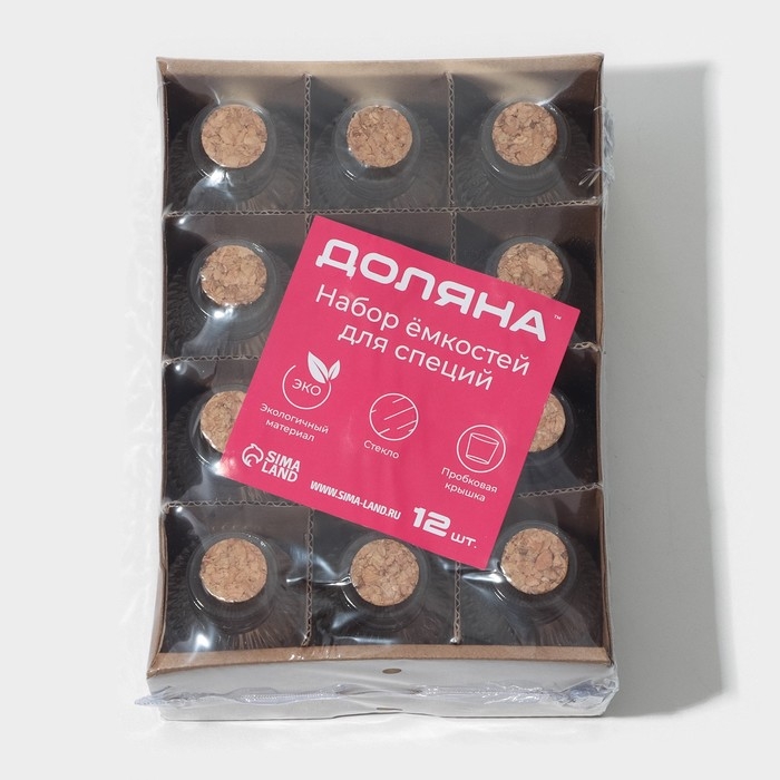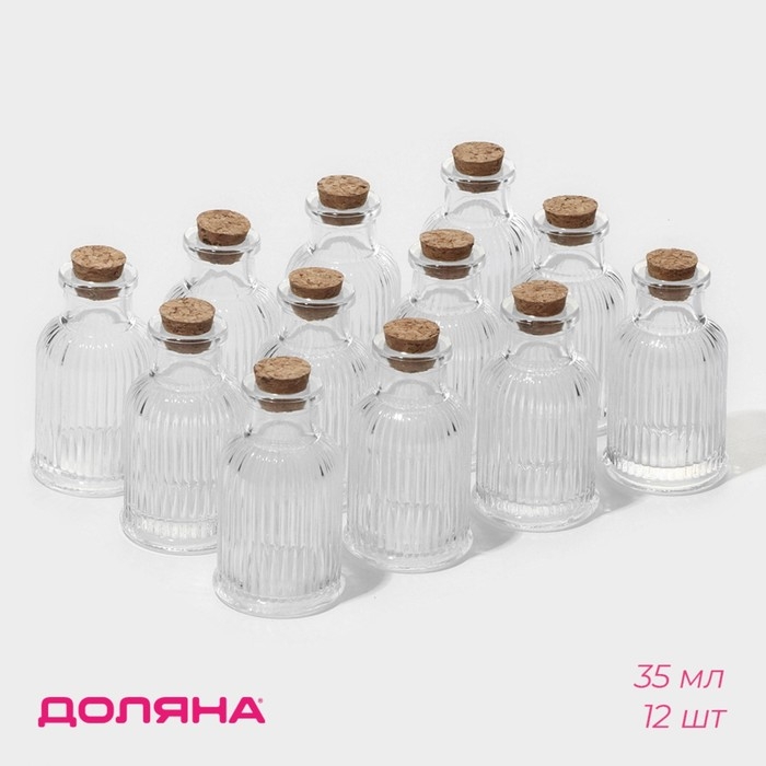 Набор баночек стеклянных для специй с пробковой крышкой Доляна «Парфе. Афина», 35 мл, 4,3×8 см, 12 шт, цвет прозрачный