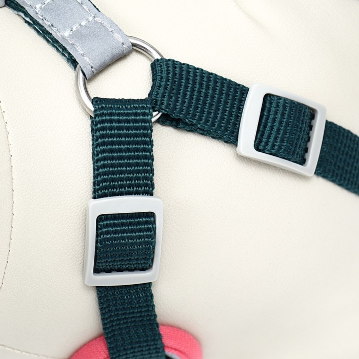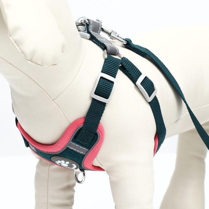 Идеальный комплект для прогулок с вашим верным другом, который доставит истинное удовольствие вам и вашему питомцу. В комплект входит шлейка и поводок.Такой комплект подойдет для собак средних пород.Шлейка для собак имеет эргономичную форму, благодаря чему смягчается любое натяжение и рывки питомца, ведь нагрузка распределяется равномерно. Амуниция изготовлена из качественной и дышащей ткани – полиэстер. Такая шлейка подойдет для носки на ежедневной основе: на прогулках или дрессировках. Анатомическая посадка шлейки обеспечивает комфортное ношение, а нагрудная лямка расположена ниже шеи и не сдавливает ее.Комплект оснащен светоотражающими вставками, теперь вы и ваш питомец сможете наслаждаться прогулками в темное время суток. Вы больше можете не переживать за безопасность своего любимца, ведь теперь даже в ночное время суток вы всегда сможете видеть своего любимца и держать ситуацию под контролем.Шлейка имеет два кольца для крепления поводка или рулетки: основное кольцо расположено на спинке, а второе на груди, оно может использоваться для коррекции поведения вашего питомца или для обычного адресника.Зеленый цвет подчеркнет индивидуальность вашего питомца и подойдёт под любой окрас шерсти, тем самым выделив вашего питомца.Позаботьтесь о безопасности и комфорте вашего любимца с нашим замечательным комплектом. Такой подарок будет точно оценен вашим любимцем.