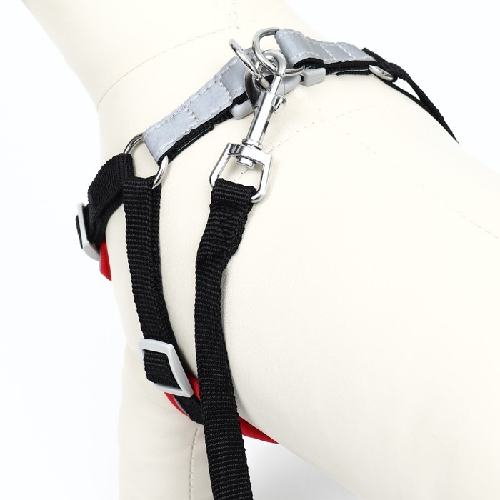 Комплект амуниции с мягкой шлейкой, M, поводок 120 х 1,5 см, ОШ 26-48 см, ОГ 26-48 см, серый