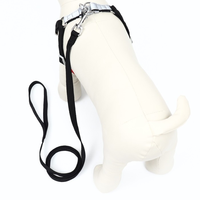 Идеальный комплект для прогулок с вашим верным другом, который доставит истинное удовольствие вам и вашему питомцу. В комплект входит шлейка и поводок.Такой комплект подойдет для собак средних пород.Шлейка для собак имеет эргономичную форму, благодаря чему смягчается любое натяжение и рывки питомца, ведь нагрузка распределяется равномерно. Амуниция изготовлена из качественной и дышащей ткани – полиэстер. Такая шлейка подойдет для носки на ежедневной основе: на прогулках или дрессировках. Анатомическая посадка шлейки обеспечивает комфортное ношение, а нагрудная лямка расположена ниже шеи и не сдавливает ее.Комплект оснащен светоотражающими вставками, теперь вы и ваш питомец сможете наслаждаться прогулками в темное время суток. Вы больше можете не переживать за безопасность своего любимца, ведь теперь даже в ночное время суток вы всегда сможете видеть своего любимца и держать ситуацию под контролем.Шлейка имеет два кольца для крепления поводка или рулетки: основное кольцо расположено на спинке, а второе на груди, оно может использоваться для коррекции поведения вашего питомца или для обычного адресника.Черный цвет подчеркнет индивидуальность вашего питомца и подойдёт под любой окрас шерсти, тем самым выделив вашего питомца.Позаботьтесь о безопасности и комфорте вашего любимца с нашим замечательным комплектом. Такой подарок будет точно оценен вашим любимцем.