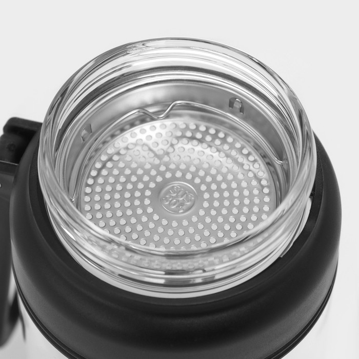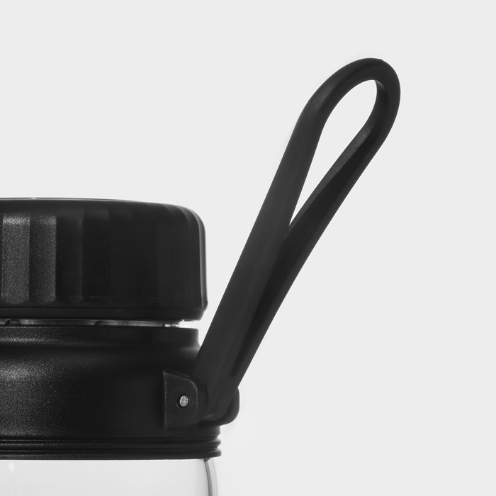 Стеклянная бутылка с ручкой «Спорт» – отличный инструмент для соблюдения водного баланса. Благодаря металлическому фильтру, ёмкость подойдёт для комфортного употребления морса, компота, лимонада, заваривания чая.