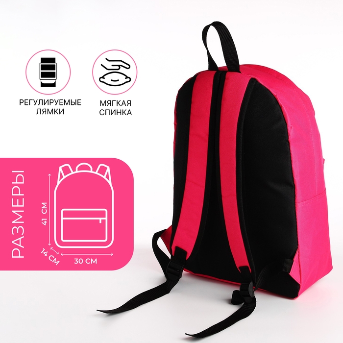 Рюкзак школьный из текстиля на молнии, наружный карман, цвет фуксия