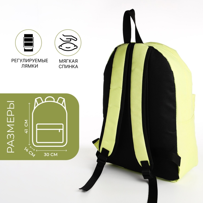 Рюкзак школьный из текстиля на молнии, наружный карман, цвет лимонный