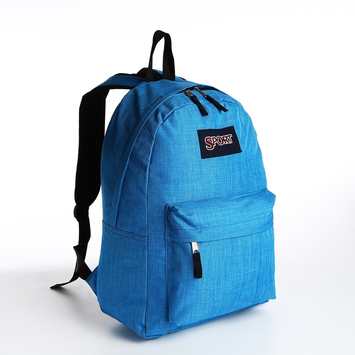 Рюкзак школьный из текстиля на молнии, наружный карман, цвет голубой