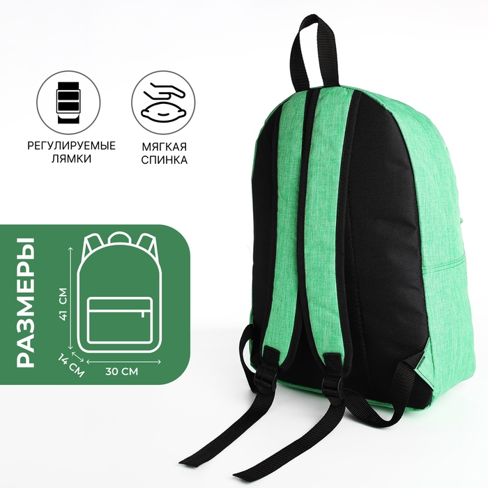 Рюкзак школьный из текстиля на молнии, наружный карман, цвет салатовый