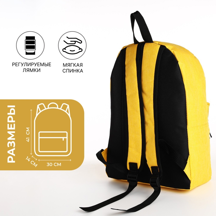 Рюкзак школьный из текстиля на молнии, наружный карман, цвет жёлтый