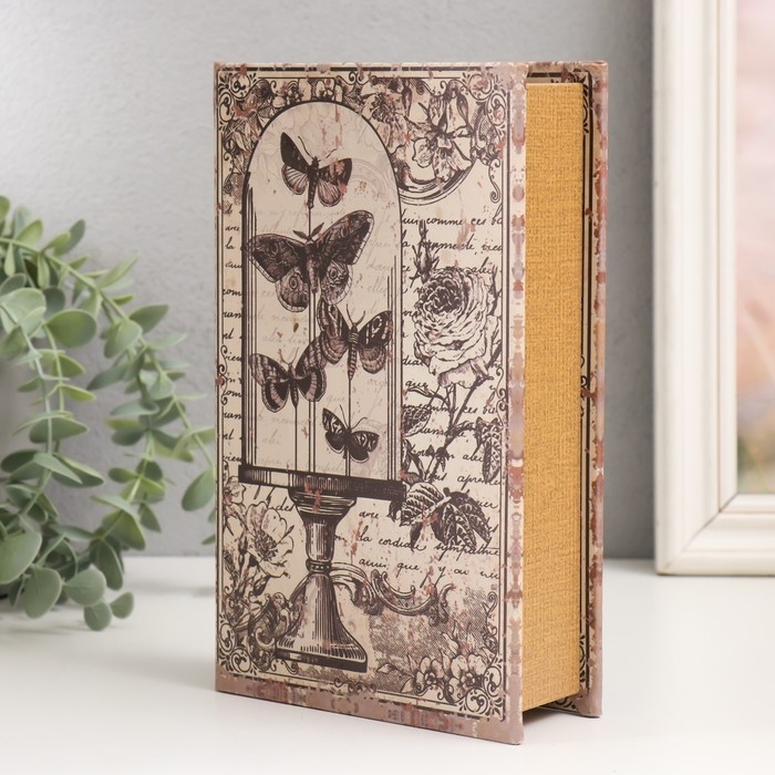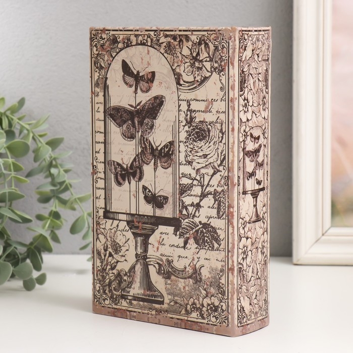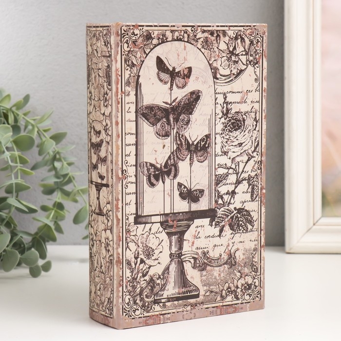 Сейф-книга дерево кожзам "Бабочки под стеклянным куполом. Ретро" 21х13х5 см