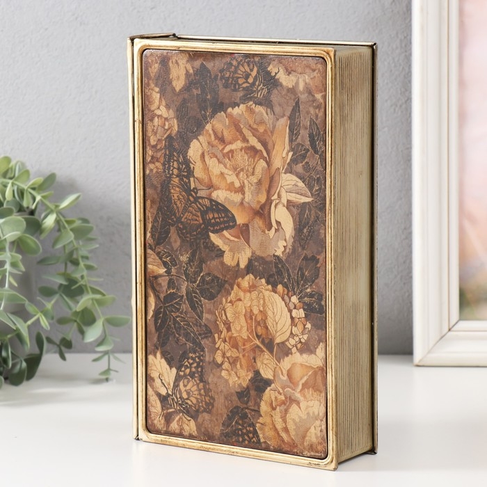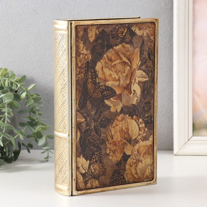Шкатулка-книга металл, кожзам "Королевские розы и бабочки. Винтаж" 26х16х5 см