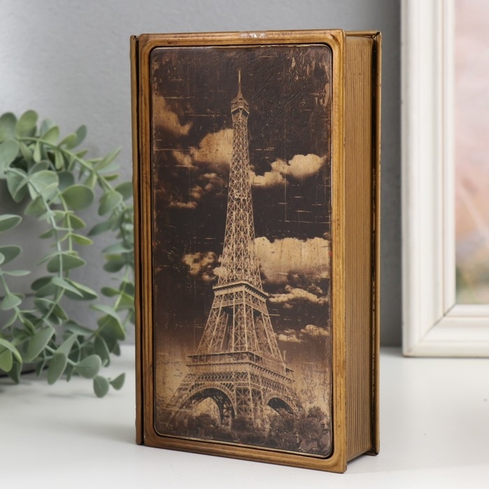 Шкатулка-книга металл, кожзам "Эйфелева башня" 20х12х4 см
