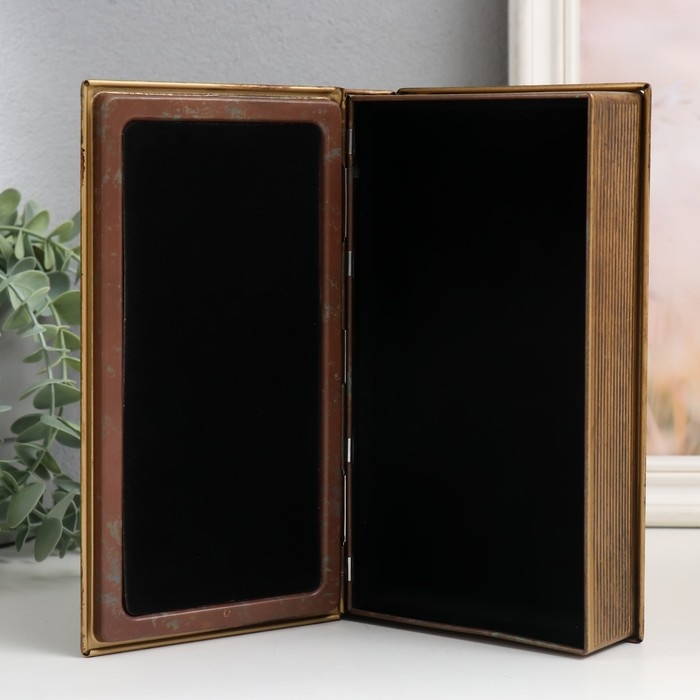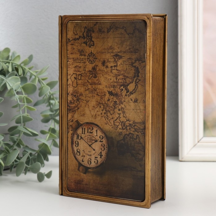 Шкатулка-книга металл, кожзам "Старинная карта и часы" 20х12х4 см