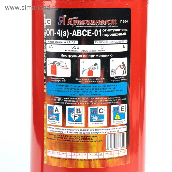 Огнетушитель порошковый "Ярпожинвест" ОП-4(3), ABCE-01(А)