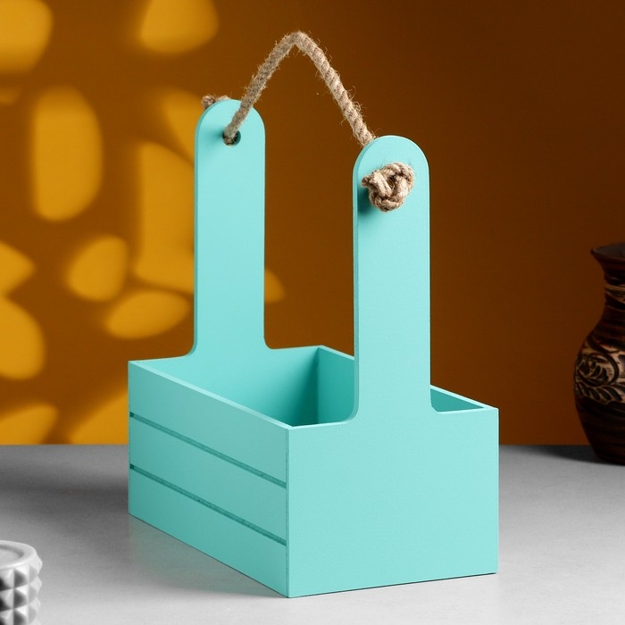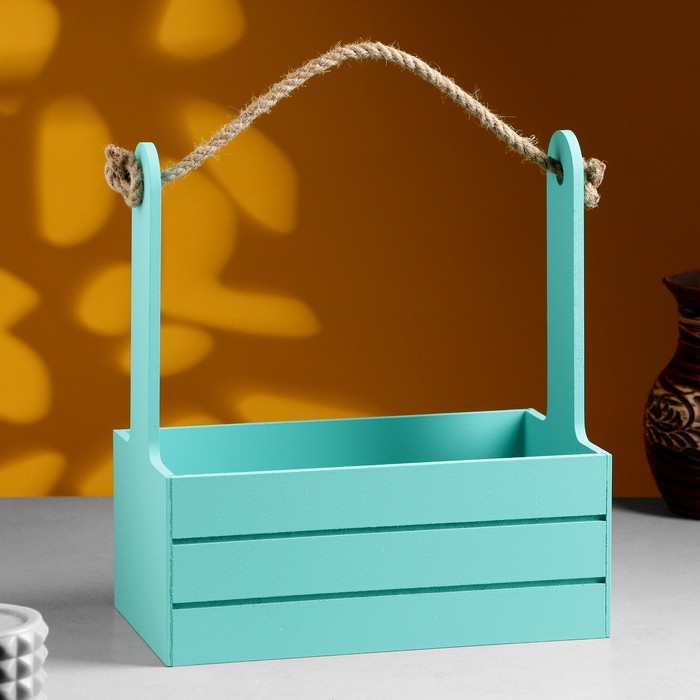 Кашпо деревянное 25.5×15×30 см "Аром", ручка канат, Тиффани