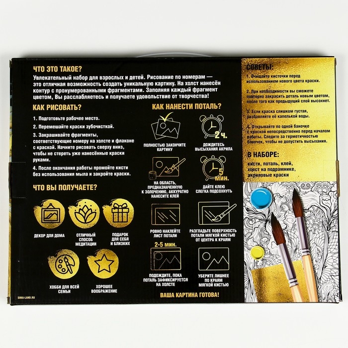 - Поначалу, когда вы только возьмёте холст в руки, будет сложно представить, что получится в итоге. Но, уверяем вас, результат превзойдёт все ожидания. Полотно с множеством оттенков, теней и красок будет выглядеть так, словно оно из музея.