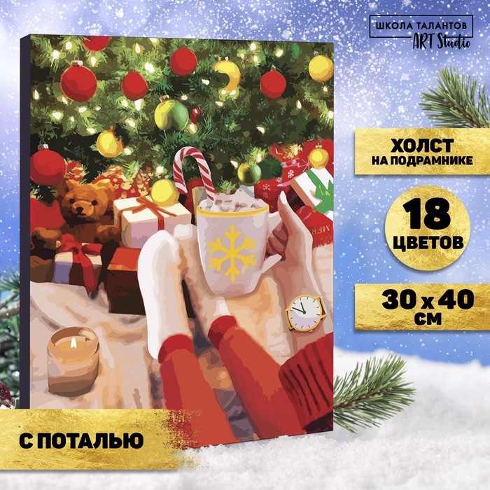Картина по номерам на новый год на холсте с подрамником и поталью «Всё сбудется», 30 х 40 см