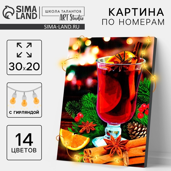 Новогодняя картина по номерам с подрамником и гирляндой «Новый год! Глинтвейн», 20 х 30 см