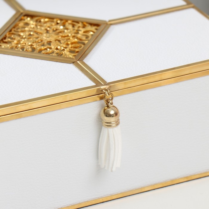 Шкатулка стекло, кожзам с металлическим каркасом "Восточный узор" белая 14,6х18,6х7 см