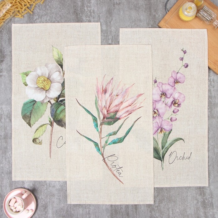 Набор полотенец Этель "Цветочное настроение" 45х70см - 3 шт, репс 167г/м2, хлопок
