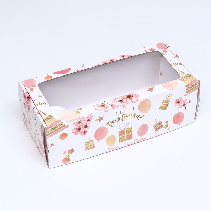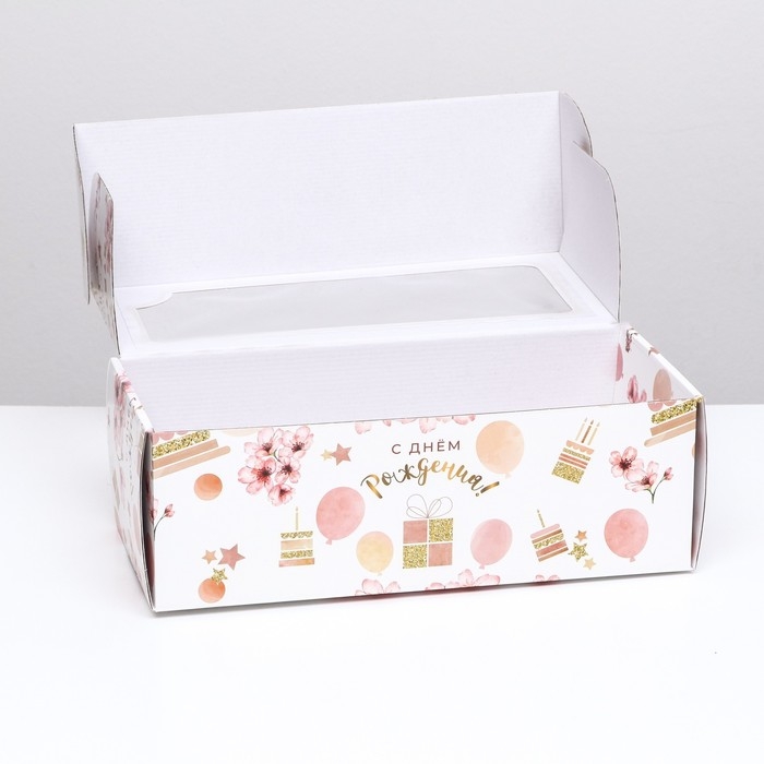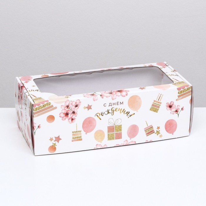 Коробка самосборная, с окном, "С днём рождения" 16 х 35 х 12 см набор 5 шт